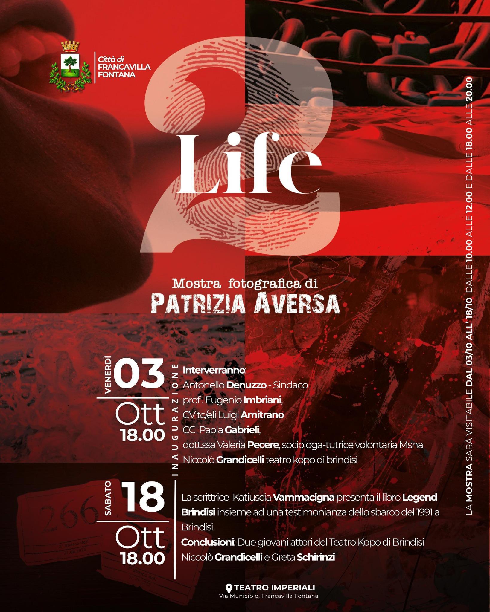 Venerdì 3 ottobre alle ore 18.00 si terrà nel teatro degli Imperiali in via Municipio l'inaugurazione della mostra "2 Life" della fotografa Patrizia Aversa.